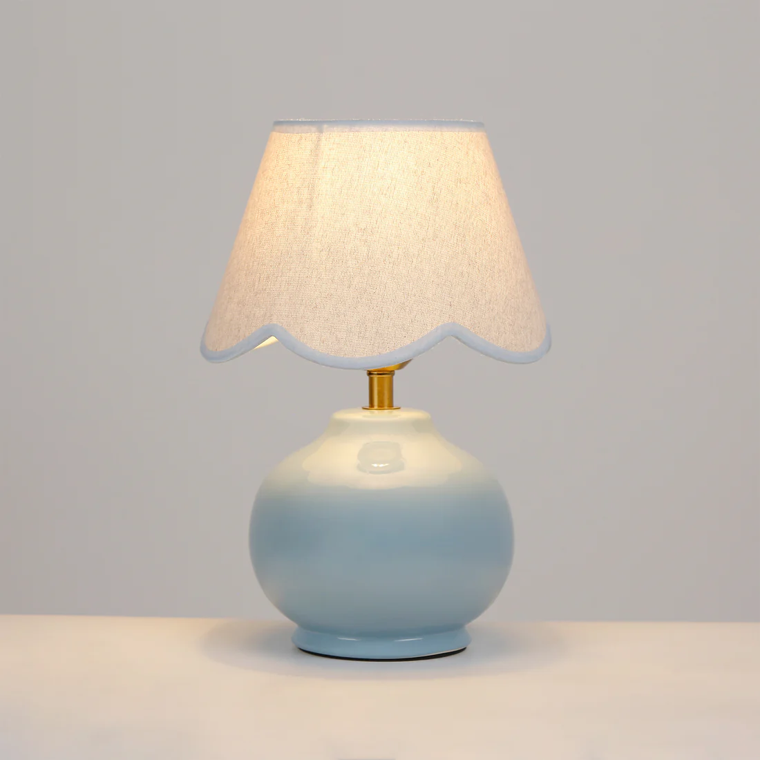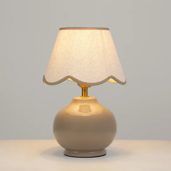 Illuminate your space with the versatile Bibury Table Lamp, featuring a stunning ceramic base available in Blue, Grey, and topped with a timeless linen shade adorned with a subtle, modern scallop design. This beautifully crafted lamp transcends style, effortlessly elevating any bedside table, desk, sideboard, living room, home office, or bedroom decor with its compact yet impactful presence while delivering ample ambient lighting.