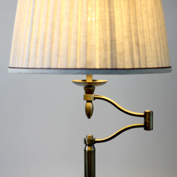 The Nicollete Lamp is a classic-looking lamp with an innovative design feature that adds plenty of character to this lighting piece. The brass stand is simply stunning, keeping to a traditional detailed base and a flawlessly polished finish. While the rippled beige lamp shade is charming and helps produce a warm glow when the globe is illuminated.
