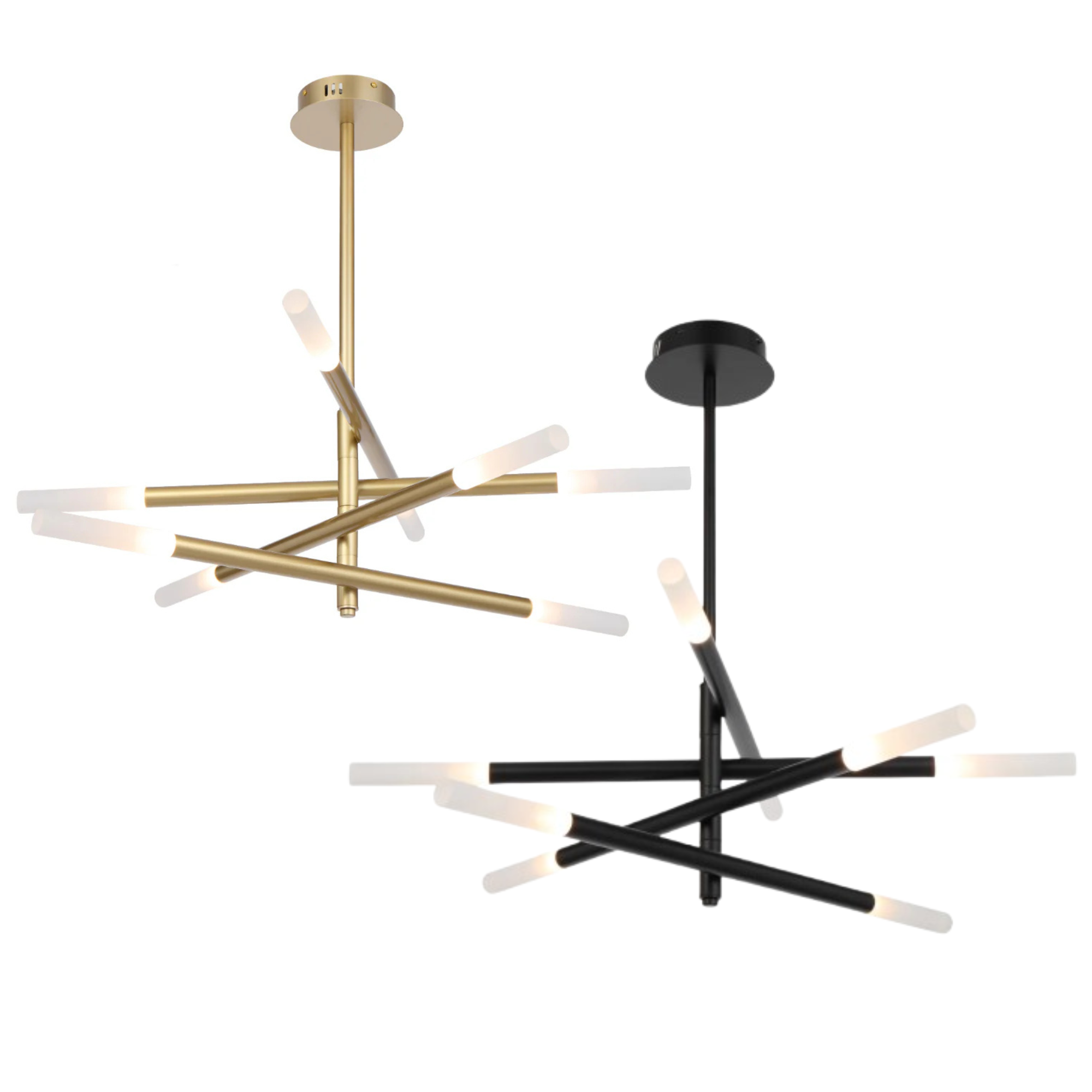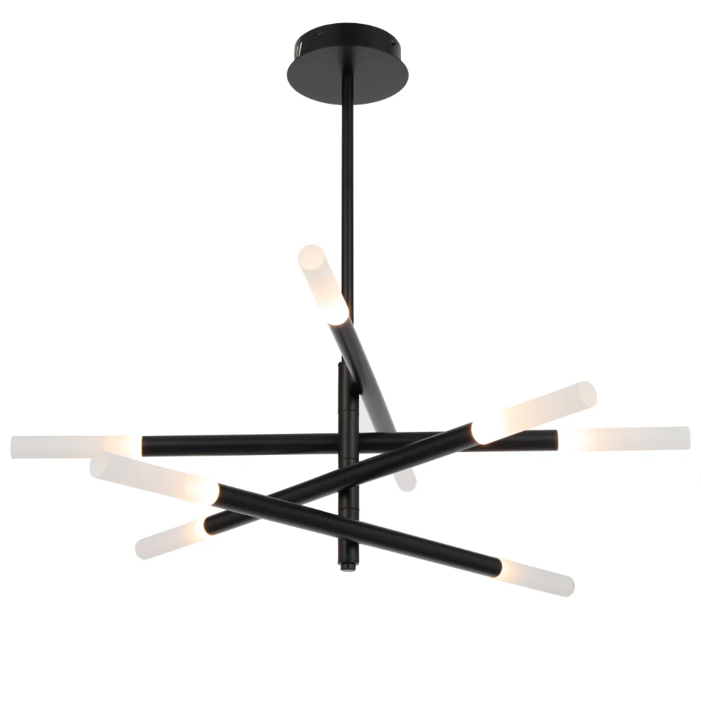 The Pinta Pendant Light is a modern and captivating fixture, available in 8 or 10 light options. Featuring integrated LED rods that emit a warm 3000K color temperature, it is constructed from durable iron and available in both gold and black finishes. Perfect for adding a touch of contemporary elegance to any space.