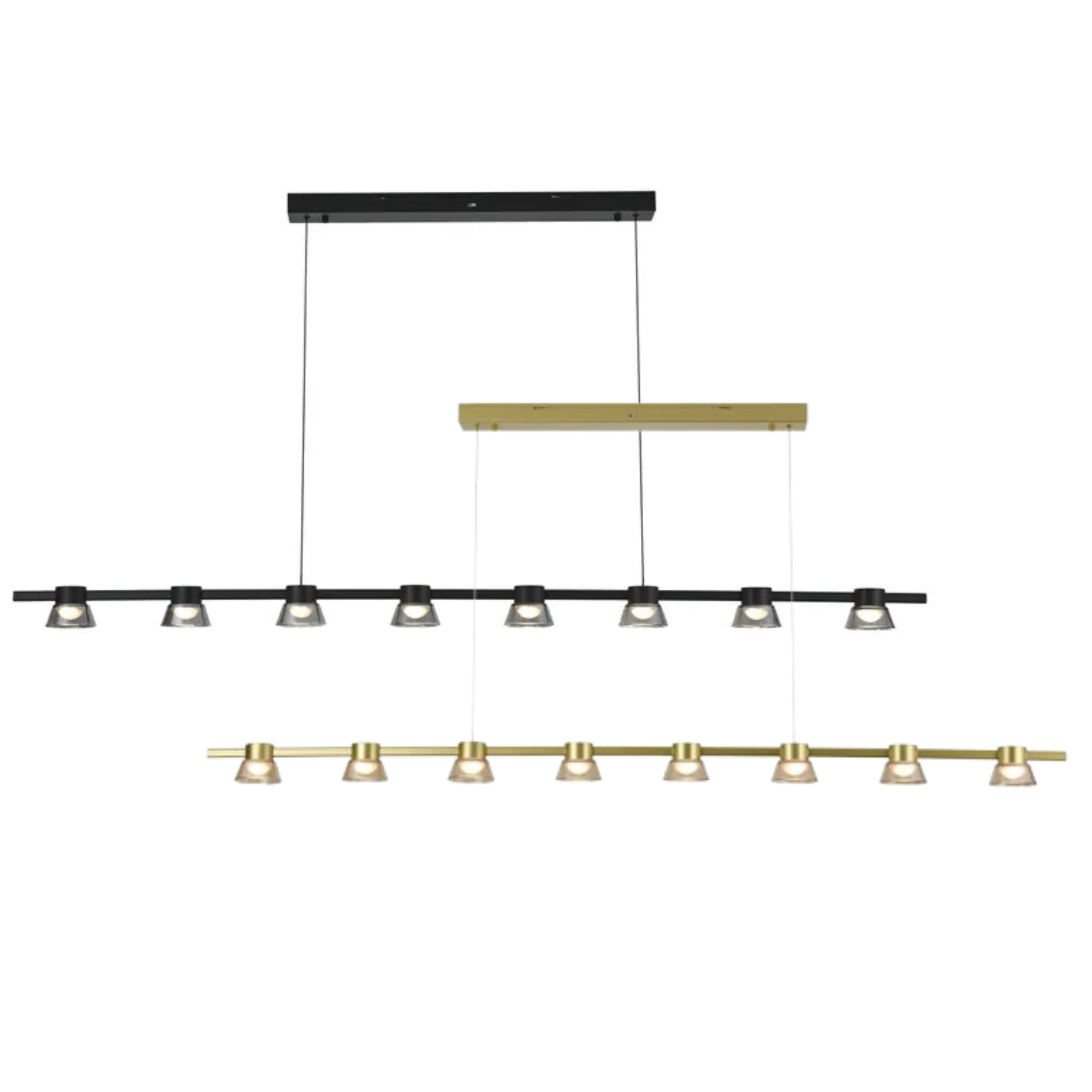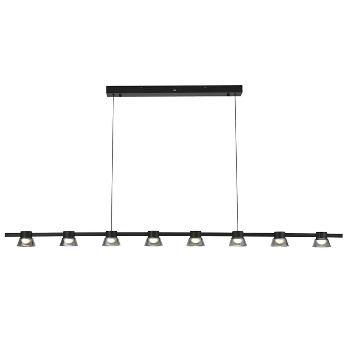 New modern and chic design LED bar pendant light features a classic black finish with a conical glass shades adding a touch of sophistication to any space. The 8-Light bar pendant also features a built-in energy efficient dimmable LED light source and comes equipped with Tri-Colour technology, allowing you to select a desired light colour between warm white (3000K), cool white (4000K) and day light (6000K).