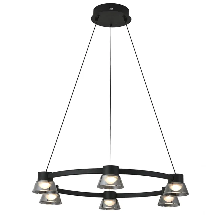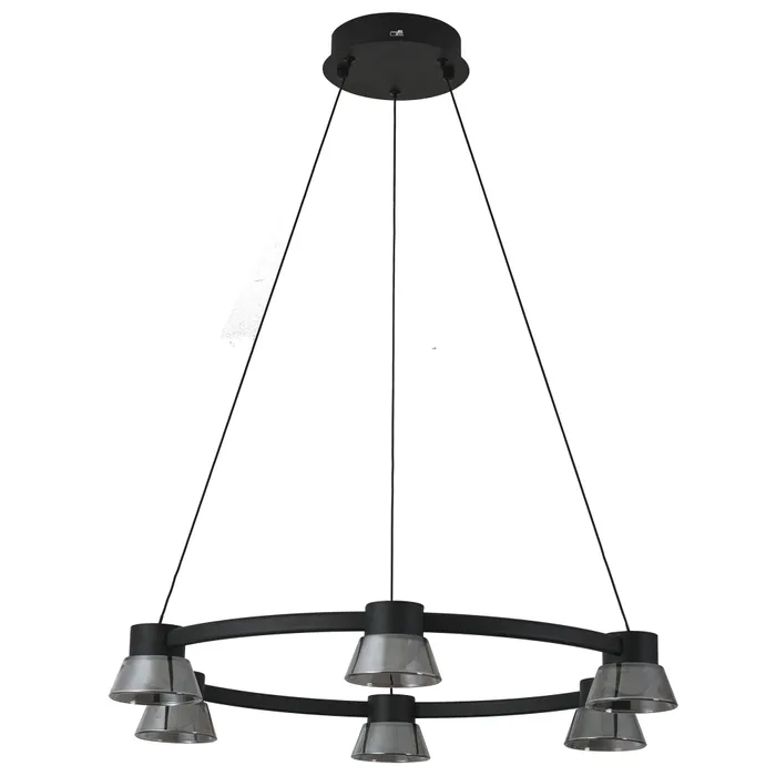 New modern and chic design LED round pendant features a classic black finish with conical glass shades adding a touch of sophistication to any space. The 6-Light round pendant also features a built-in energy efficient dimmable LED light source and comes equipped with Tri-Colour technology, allowing you to select a desired light colour between warm white (3000K), cool white (4000K) and day light (6000K).