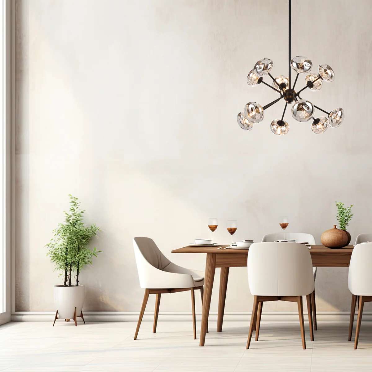 The Varlin range features a striking design with mirrored glass shades accented by delicate speckles, creating a unique and atmospheric light output. Available in three different pendant sizes, Varlin offers a cohesive and contemporary lighting solution for any space.